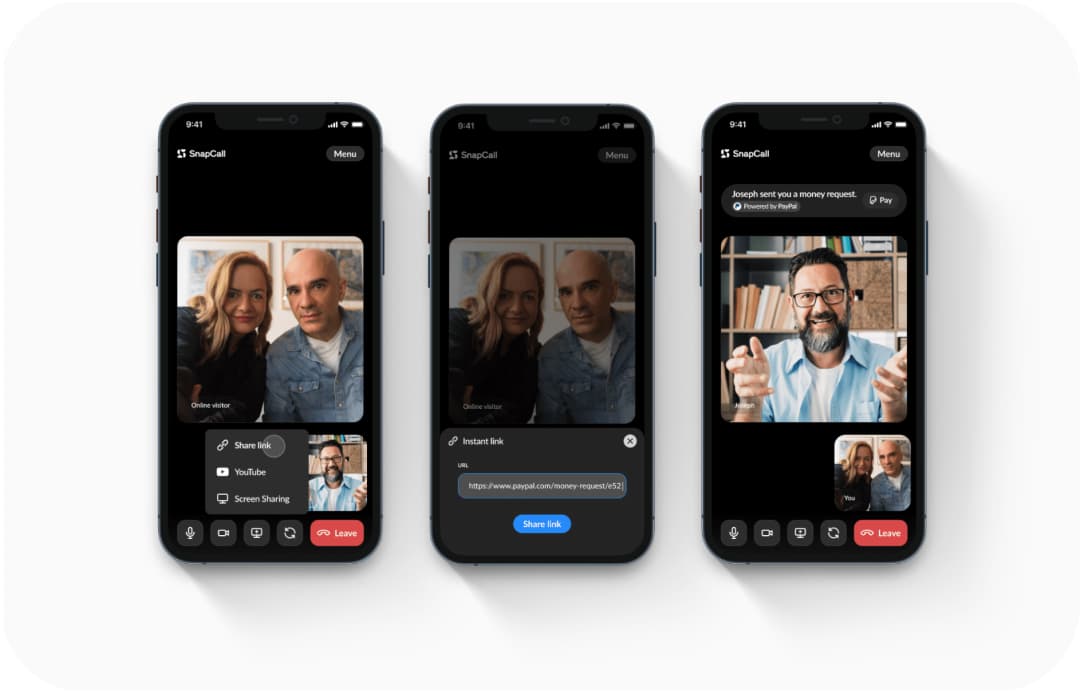 Thanks to SnapCall video can be effortless, which means no installations, no plug-ins, no accounts, and no phone numbers! So it's easy to integrate it into your sales or customer support processes.