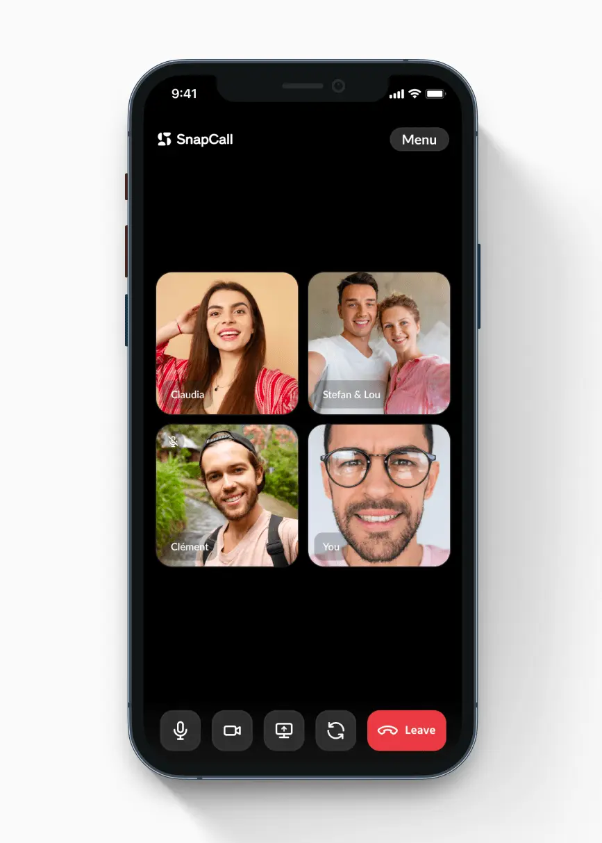 In SnapCall, you can see participants on equal-sized tiles arranged in a grid view. The speaker's tile is automatically highlighted, so it's easy to see who's talking.