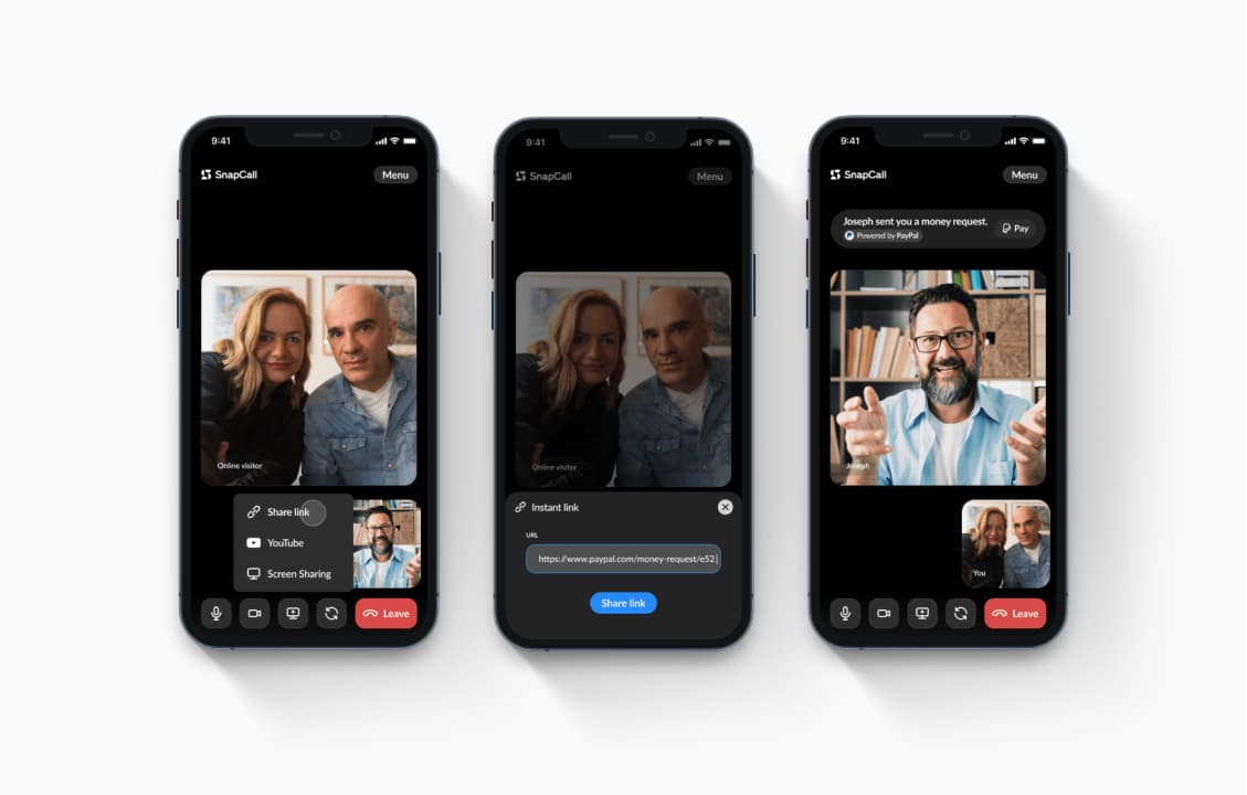 SnapCall is introducing Direct Pay, an immersive way to offer a payment link during a SnapCall. This new feature allows anyone to send a PayPal link, whether it's an invoice or a money request. The link will be automatically recognized by SnapCall and displayed seamlessly in the call. The customer will thus be able to consult this link in complete safety and will be able to proceed to the payment during or after the call.